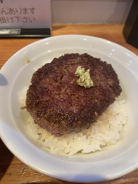 ハンバーグ丼は、茨城和牛だとの事なので粗おろしの山葵と少し甘めのタレで、ご飯をかっ込むと味噌ラーメンの着丼です!