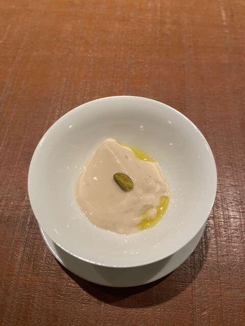 韃靼蕎麦茶/ピスタチオ…韃靼蕎麦のブラマンジェにピスタチオオイルがかけてあります!