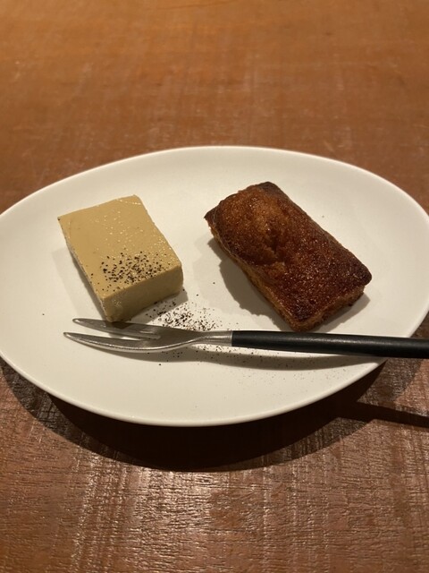 焼きたてフィナンシェと加賀棒茶プリン…こちらもスペシャリテで焼きたてフィナンシェは、まだ温かく、プリンは香りたかい一品で、良い食後です♪