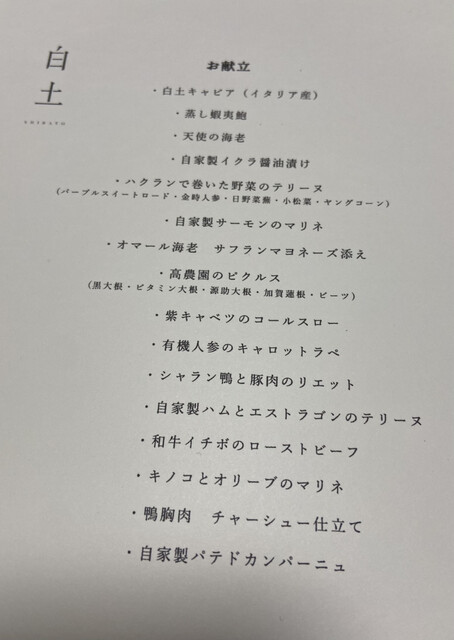 一年通して白土さんのお料理を頂きましたが、どれも個性があり、人柄もお料理の内で最高でした♪