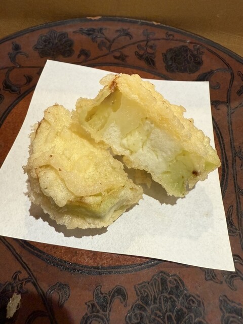 緑茄子…今回は、衣少し厚くしてトロトロの茄子との食感の違いが素晴らしかったです!