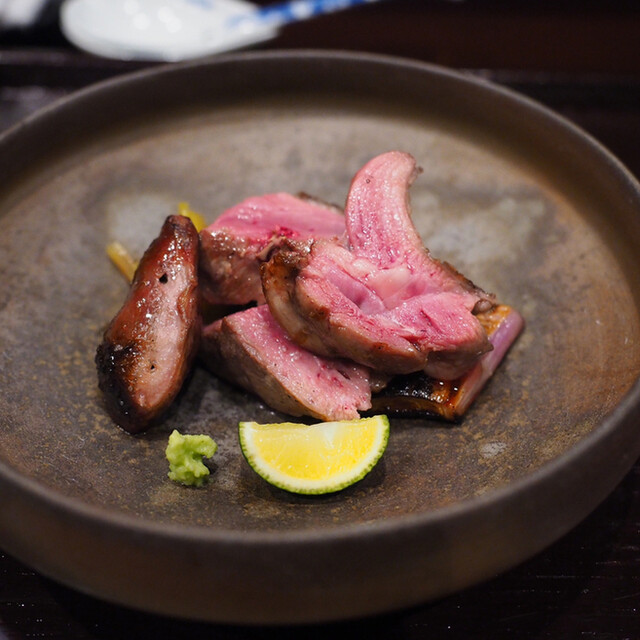 →ハツと鴨の盛り合わせ。超おいしい…!