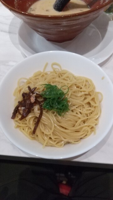 チャーシューは胡椒で味付けした鶏むね肉だろうか。大葉、椎茸、刻み海苔?と、全てのトッピングが濃厚スープとバランスを取るためにあっさり目の味わいにされている印象。勿論決して薄っぺらいなんてことはなく、味わいがくどくなり過ぎない絶妙なチョイスである。