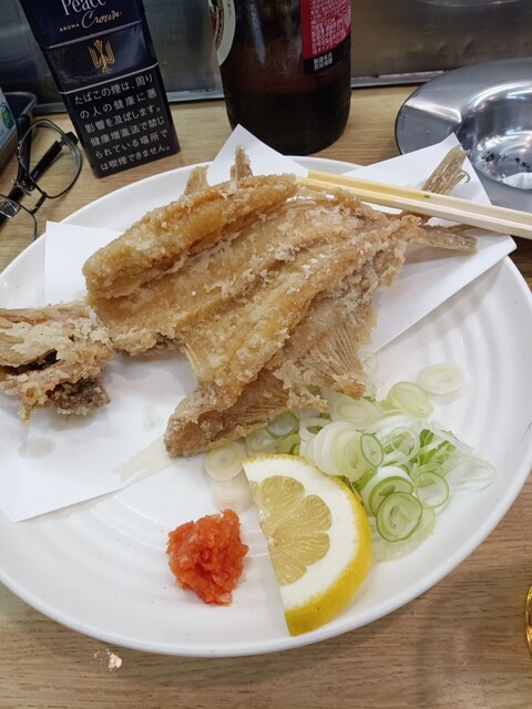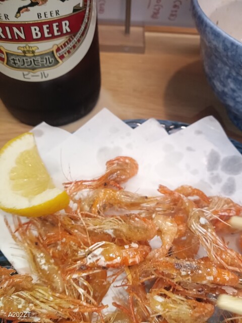呑みたり無かったのでビール1本だけの予定で来店。芝海老唐揚げをつまみつつ、ばくだんが来るのを待つ。