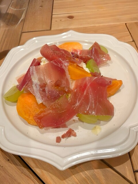 自家製チーズと季節のフルーツ、熟成生ハム。