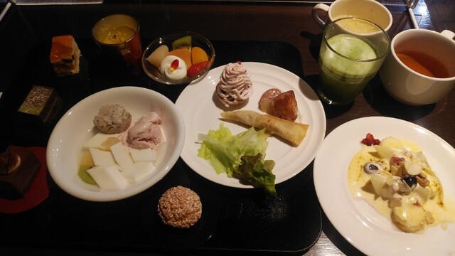 ・デザート各種…言わずもがなどれも美味しいです。ガトーショコラに実演デザートのカシスジェラートを添えて食べると更に美味しさが増しました。フルーツ盛り合わせはデザートブッフェの時より豪華で7種類ほどあり、珍しいところではドラゴンフルーツがありました。