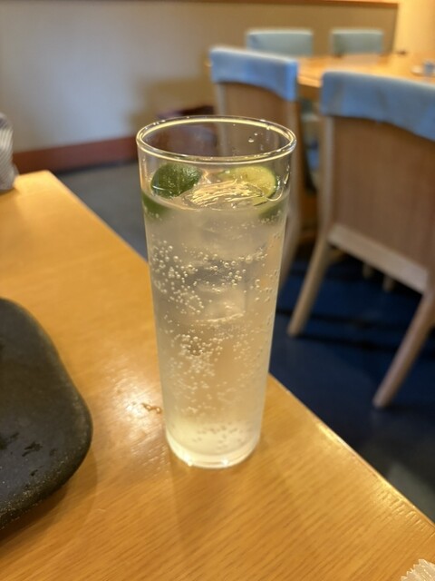 蕎麦焼酎の冷たいそば湯割り、蕎麦焼酎とすだちのハイボール。
