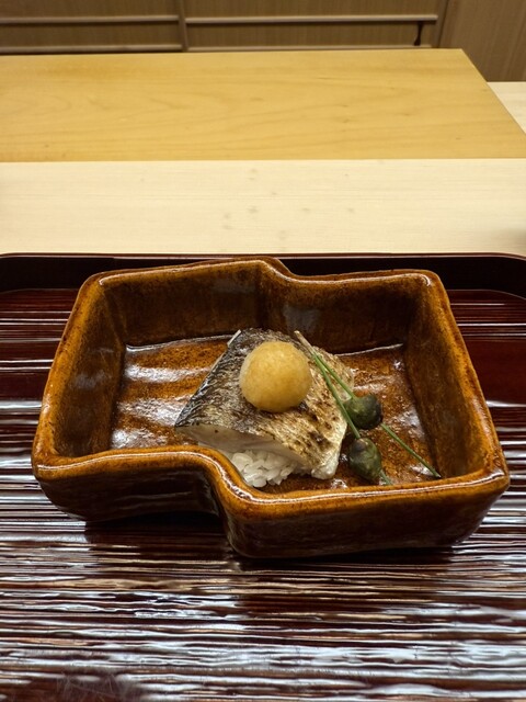 【美味しかったもの】のどぐろは幽庵焼きで頂きました。脂の乗りと火入れが絶妙。能登椎茸を使った香煎茶やお造りも印象的で、どの料理も一皿ごとに丁寧な仕事が感じられました。