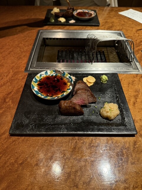 目の前で仕上げられる料理は、特選黒毛和牛や熟成肉、希少部位を使った