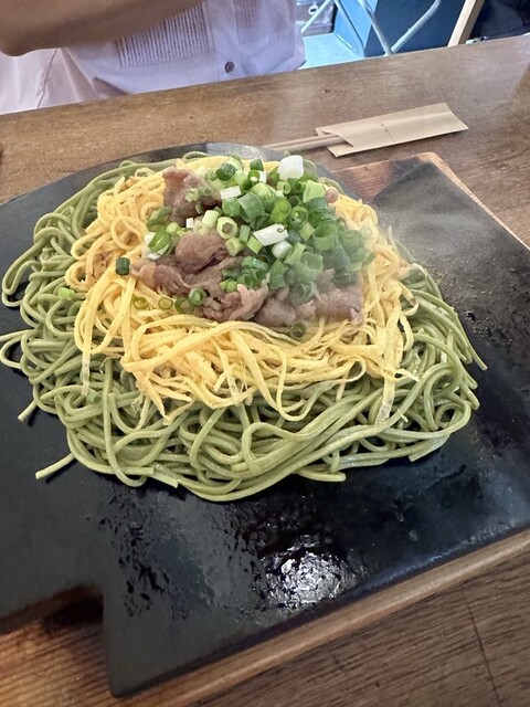 私達は瓦そばとお好み焼きを2人でシェア。この時期外せない、桃パフェをいただき大満足でした。