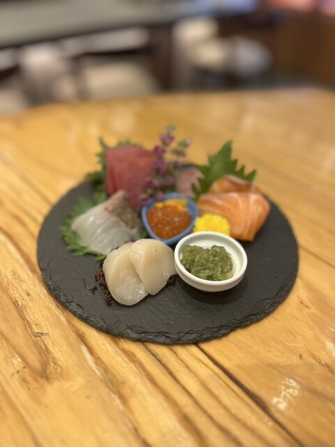 刺身盛りは想像以上に豪華で、見た目の華やかさだけでなく鮮度の良さも抜群。特にサーモンは肉厚で、口に入れた瞬間の食べ応えに驚かされた。串盛り合わせはウニやいくらが贅沢に乗っており、映えるだけでなく、それぞれの素材の良さがしっかり活かされていて満足度が高い。