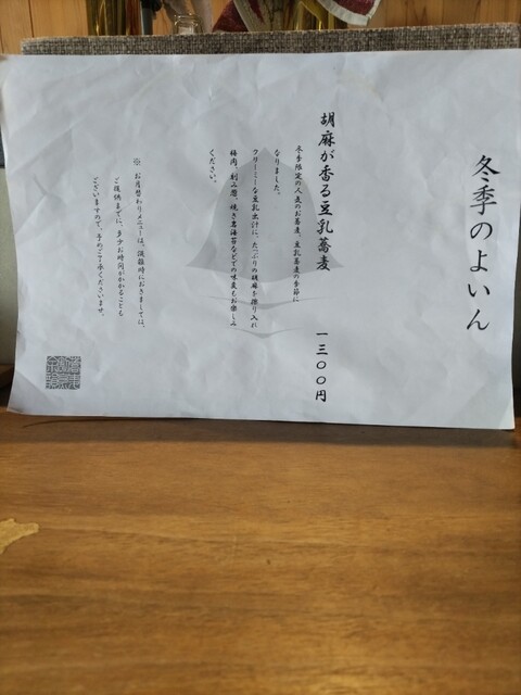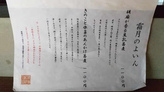 まずは3月末迄の限定、胡麻が香る豆乳蕎麦