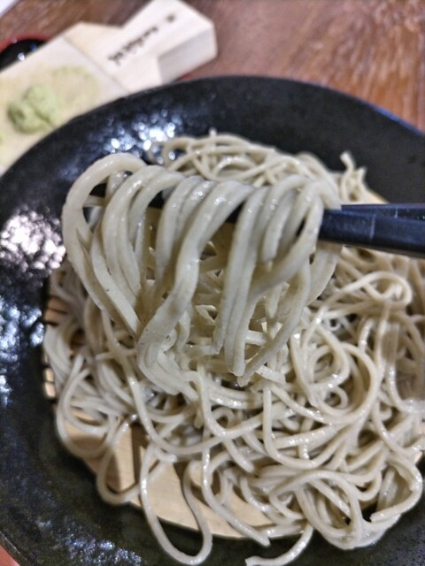 何時ものざるそば大盛りは翠色掛かった綺麗なお蕎麦、本わさび、つけ汁も極上です(。・ω・。)ノ♡