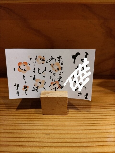 予約時に苦手な物、アレルギーを尋ねて下さり、伺うと毎回席に素敵なメッセージカードが有るのも嬉しいです!