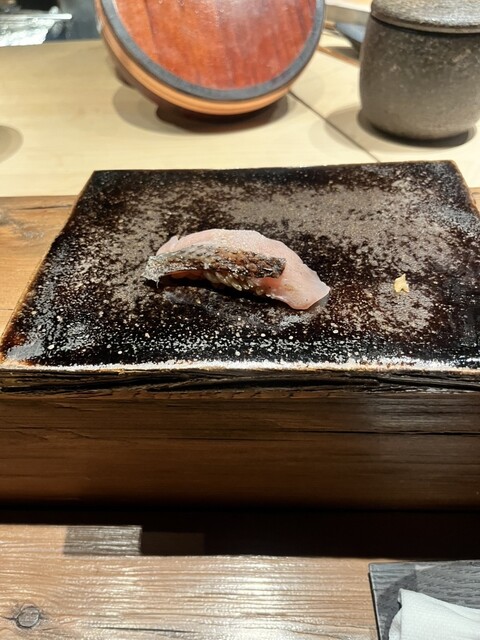 炭塩で食べるのが最高過ぎました。寿司を塩で食べるとは私も大人になりました。