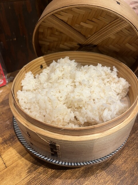 鍋?と言う名前だが、こちらは味付けのしてある霜降りとヒレを焼いて熱々のセイロ飯と一緒に頂く。