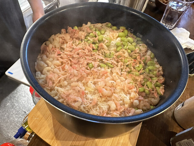 お持ち帰り用の炊き込みご飯(エビと生姜で)