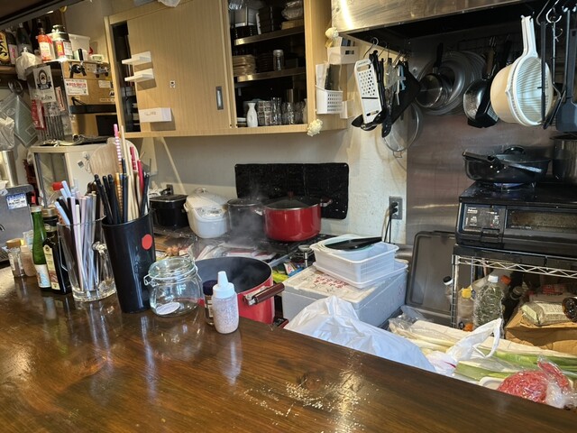 店内はカウンターが6席、4人掛けのテーブルが1卓です。