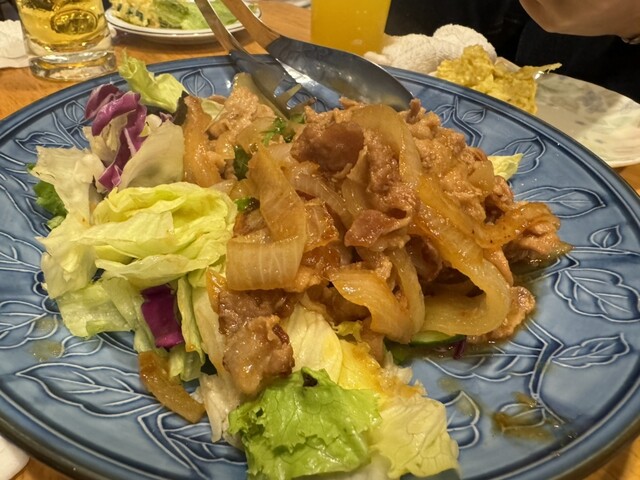 料理はポテトサラダ、豚の生姜焼き、唐揚げ、豚キムチ、オムライス、ナポリタンスパゲッティなど出てきました。