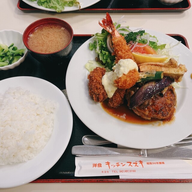 メンチカツ、蟹コロッケ、海老フライ定食を注文