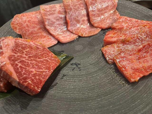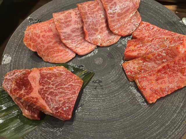 良質な脂をしっかりと感じるカルビと、食べ応えのある厚切りヒレ、そして程よい脂が心地よいロース。