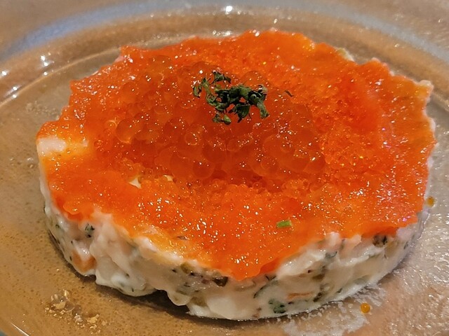 とびっこやいくらがのった「通風ポテトサラダ」は、ゴロゴロと入ったじゃがいもの食感が心地よいです。