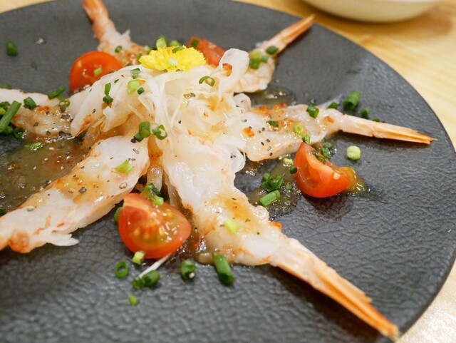 赤海老のカルパッチョは見たことがなかったので、早速注文しました。