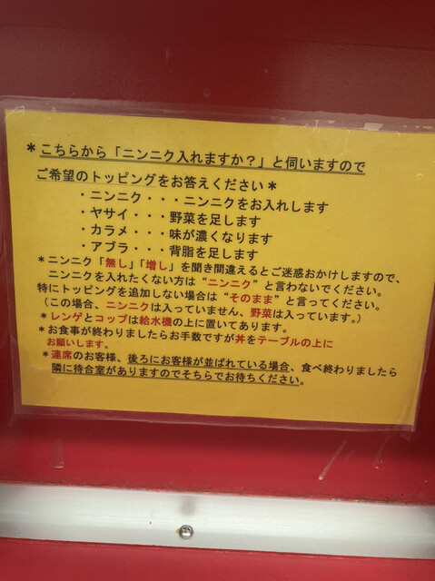 前回 ニンニクマシマシは辛すぎたので、今回はマイルドなコールにしようと考えながら着席です