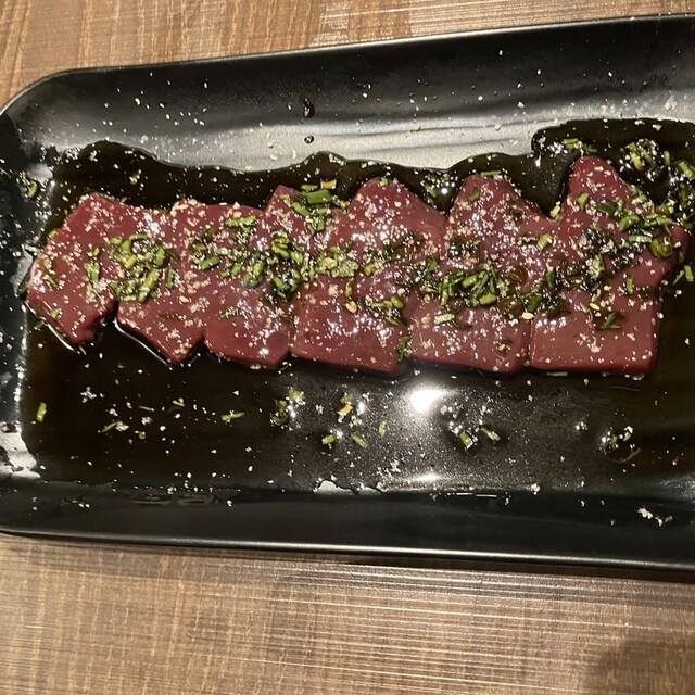 炙りレバーでは、一般的な塩ごま油に加えにら醤油がありますが、このにら醤油で食べるレバーはとても美味しかったです