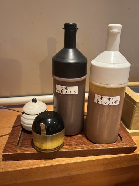 さらにお次は卓上のゴマとんかつソースにからしをトッピングしていただくと、もう間違いない安定の美味しさ❗️