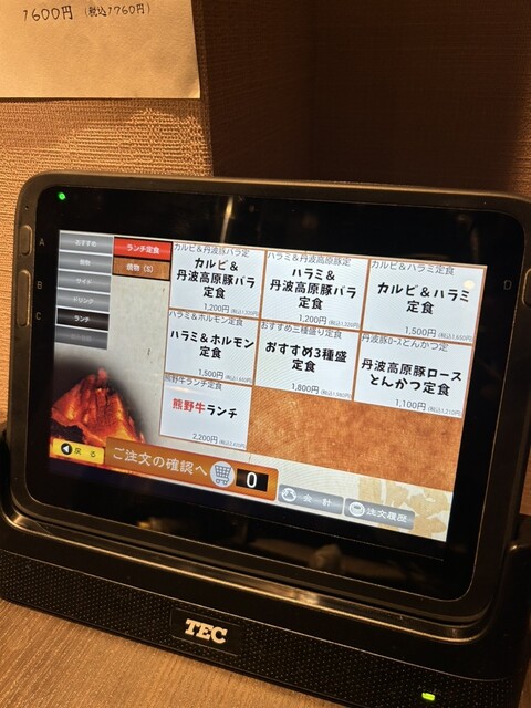 タブレットを確認するとランチ限定のS盛り追加メニューの
