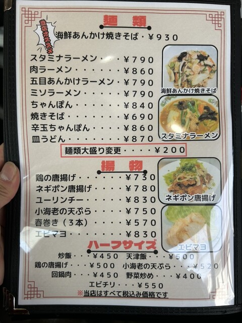 麺類、揚物、ハーフサイズメニュー❗️