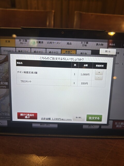チキン南蛮は4個1199円も選べたんですがご飯おかわりする気満々だったので3個にしときました♪