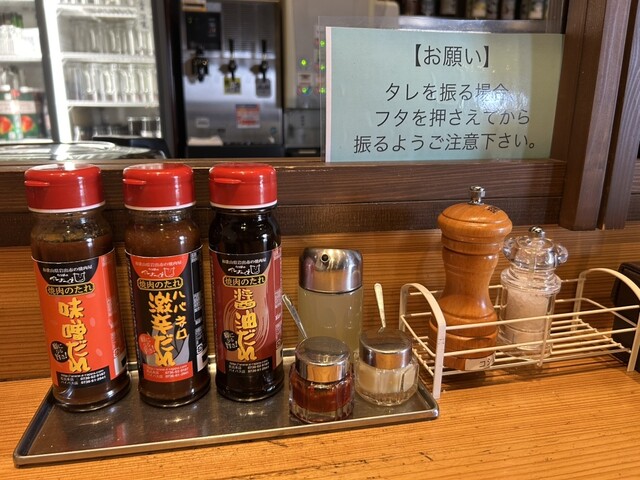 他にレモン汁、にんにく、辛みそ、岩塩、胡椒が置いてありました♪