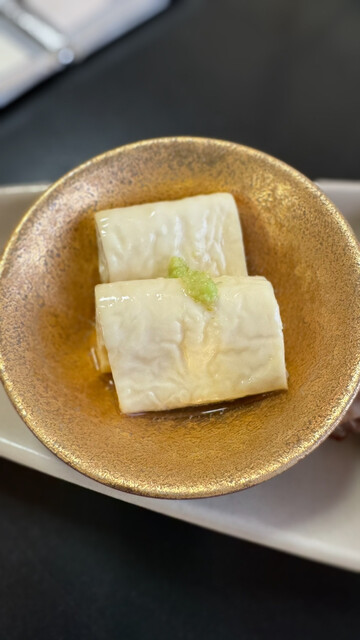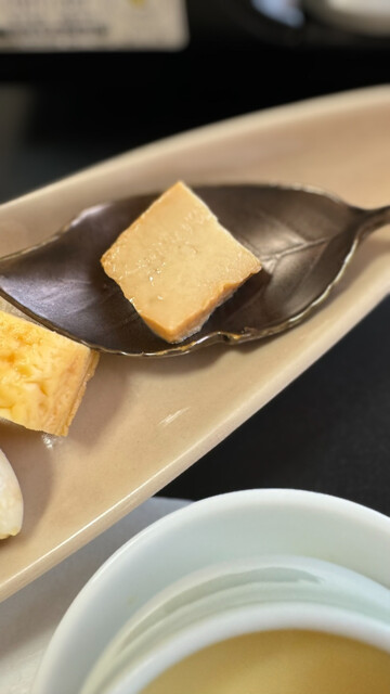 左から奥久慈湯葉挿し,塩焼き,卵焼き,エシャレット味噌,豆腐の燻製味噌漬け?多分だあってる