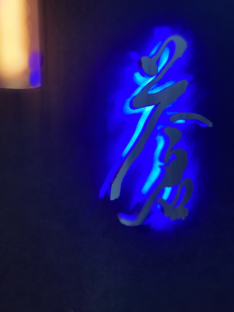 入り口の蒼い光で照らされた「蒼」の文字