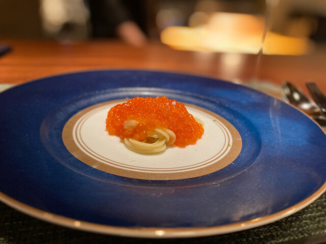○新いくら冷製フェデリーニ 蛤出汁