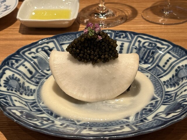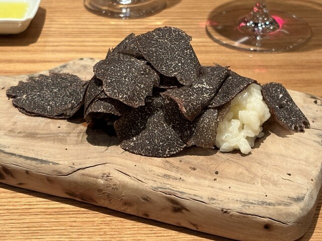 ★8時間蒸しあげた蝦夷鮑、りんご(こみつ)とパルメジャーチーズのリゾット、黒トリュフ