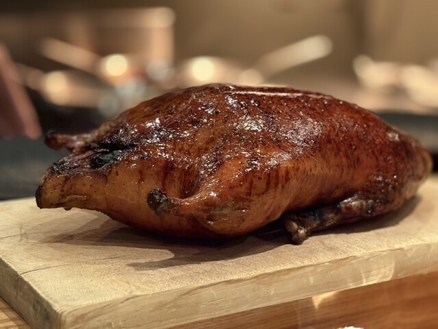 冷蔵庫で水分を抜き、高温で休ませながら焼き上げたジューシーな鴨