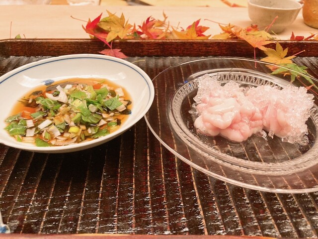 の刺身、九条葱(京都府鷹峯産)ポン酢