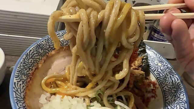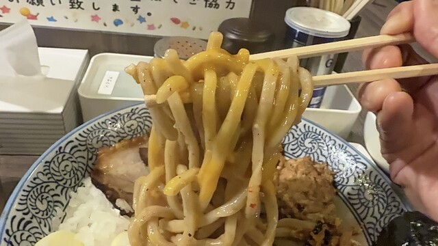 力強い太麺が暴れまわり、噛むたびに旨味が炸裂。