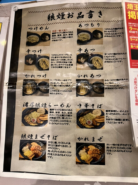 先日狼煙さんのまぜそばを頂きに行った時に、店長さんが狼煙ストの方とお話ししてて、麻婆つけ麺やりますよとのアナウンスを盗み聞き。