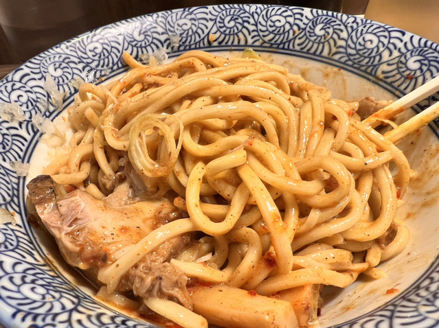 通常のつけ麺は麺は冷やしですが和えつけなので麺は熱盛り。