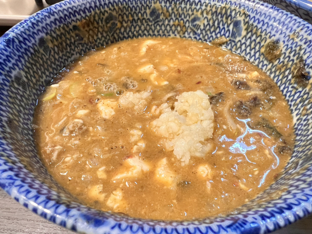 狼煙さん特有の濃厚つけ麺に麻婆がプラスされて最高のタッグ!麻婆好きにはたまらない。