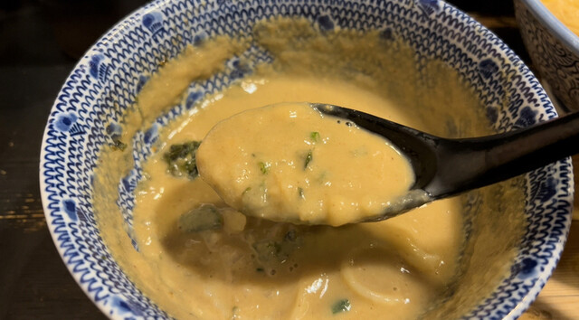 つけ汁は濃厚ドロドロ。鯛の風味満載でとてつもなく美味しい。濃厚ながらくどくなく、途中で少し酢をたらしてさっぱり感UP。