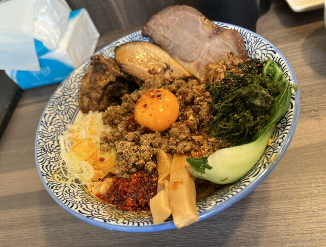 狼煙のまぜそばらしさをしっかりと踏襲しつつ、濃厚な坦々麺に昇華している、狼煙節満載の坦々まぜそば。