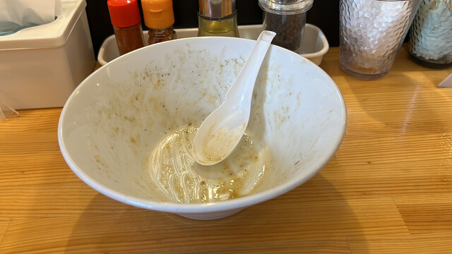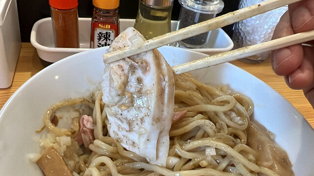 久々の濃厚はトロリとちょうどいい濃度でエグ味は少なくマイルドな食べ易いテイスト。ストレートパツ細麺にも良く絡む。
