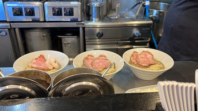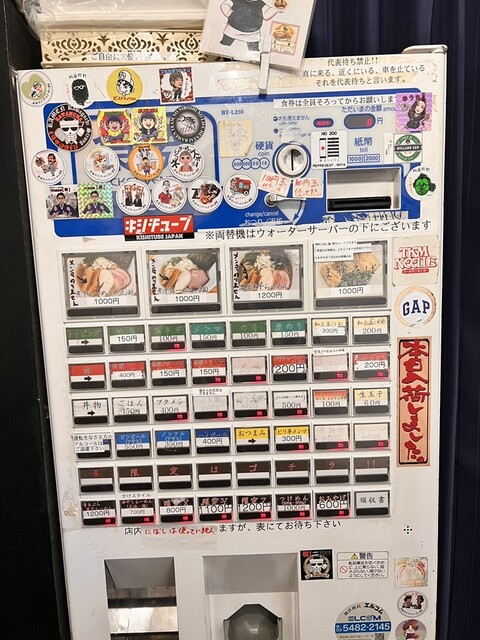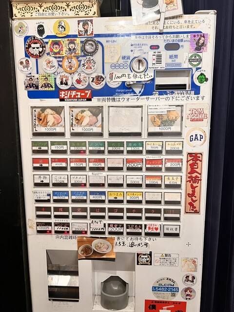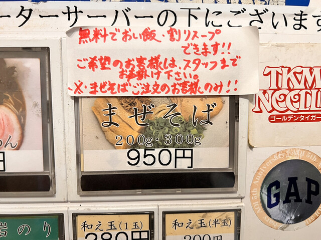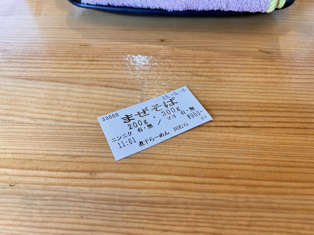 まぜそばには×ランプが点いていて、あれ?無いのかなと女将さんに確認したら、「同金額の食券で大丈夫ですよ」との事でしたが、最近、濃厚食べてないなと思い濃厚をポチり。