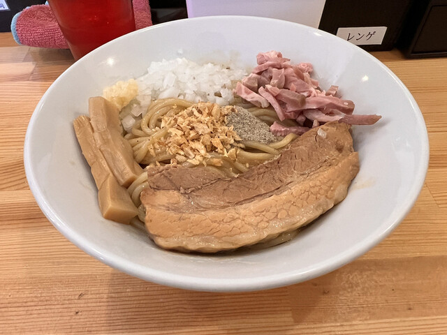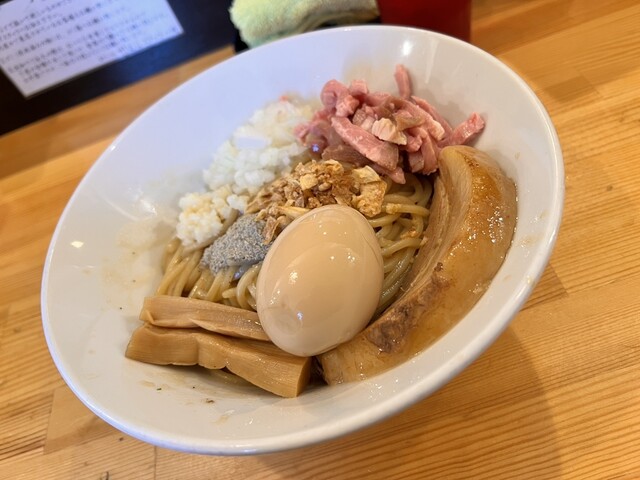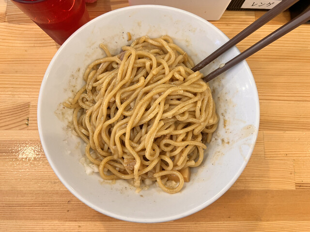 濃厚なまぜそばをお出汁でさっぱりと頂きます。