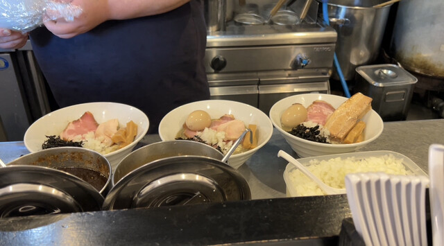 人気の1番席に腰をかけ、着丼まで数分待ちます。